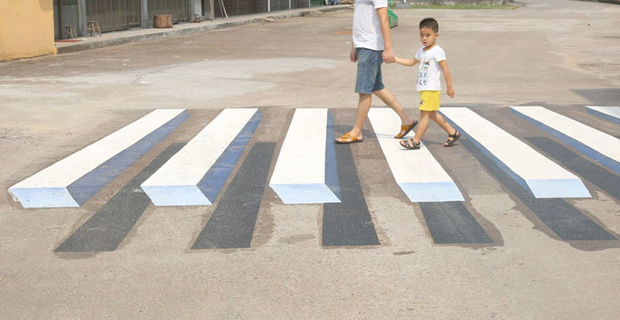 Nitin Gadkari, il ministro dei trasporti del paese con il più alto numero di vittime per incidenti stradali ha avuto un'idea per far rallentare gli automobilisti in corrispondenza degli attraversamenti pedonali e rendere più sicure le strade e in alcune zone della municipalità di New Delhi, India, è stato realizzato un trompe-l’oeil di strisce pedonali per farle sembrare tridimensionali e sospese sopra il livello stradale agli occhi degli automobilisti.